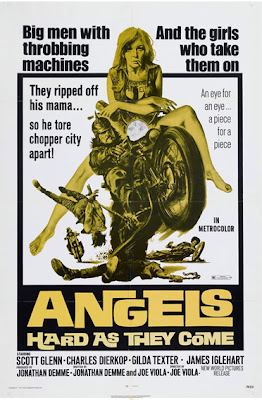 The actual film is a snoozefest (it's no Dragstrip Girl) but check out the way out poster action, man. One of the best taglines ever. I like how evenly stacked the fight is too. Well, he does have a car but the other guy has a wrench. Car beats motorcycle but I know fist don't beat wrench! Golly willickers I'm confused and they are coming right at me!